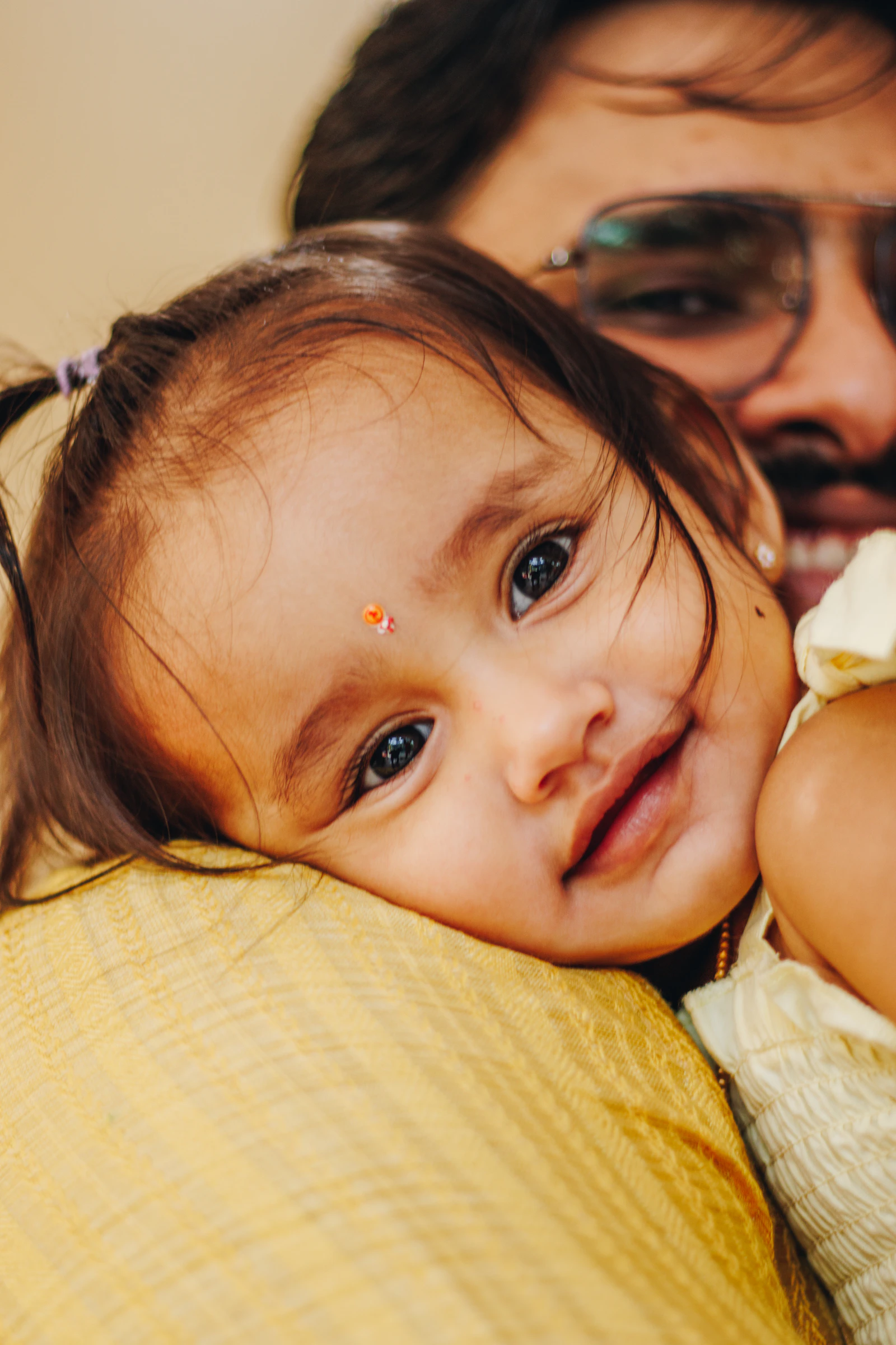 A small muslin or cloth on your shoulder catches any small spit-up.